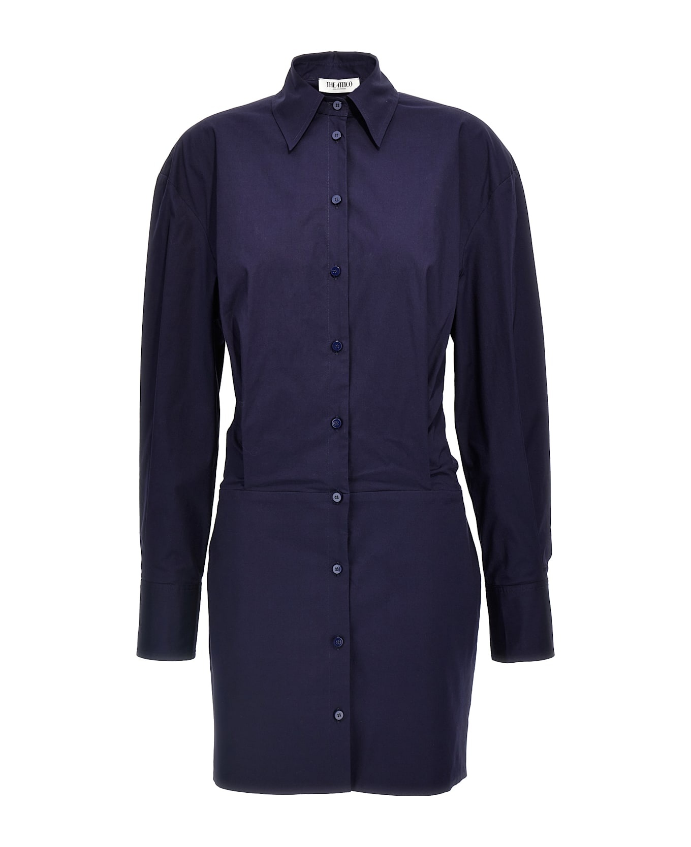 Chemisier mini cotton dress with button closure, long cuffed sleeves, front and back pincer. Composition: 97% cotton, 3% elastane Made in: Italy Color: Blue Size and fit: - true to size fit Model number: 250WCA00093184