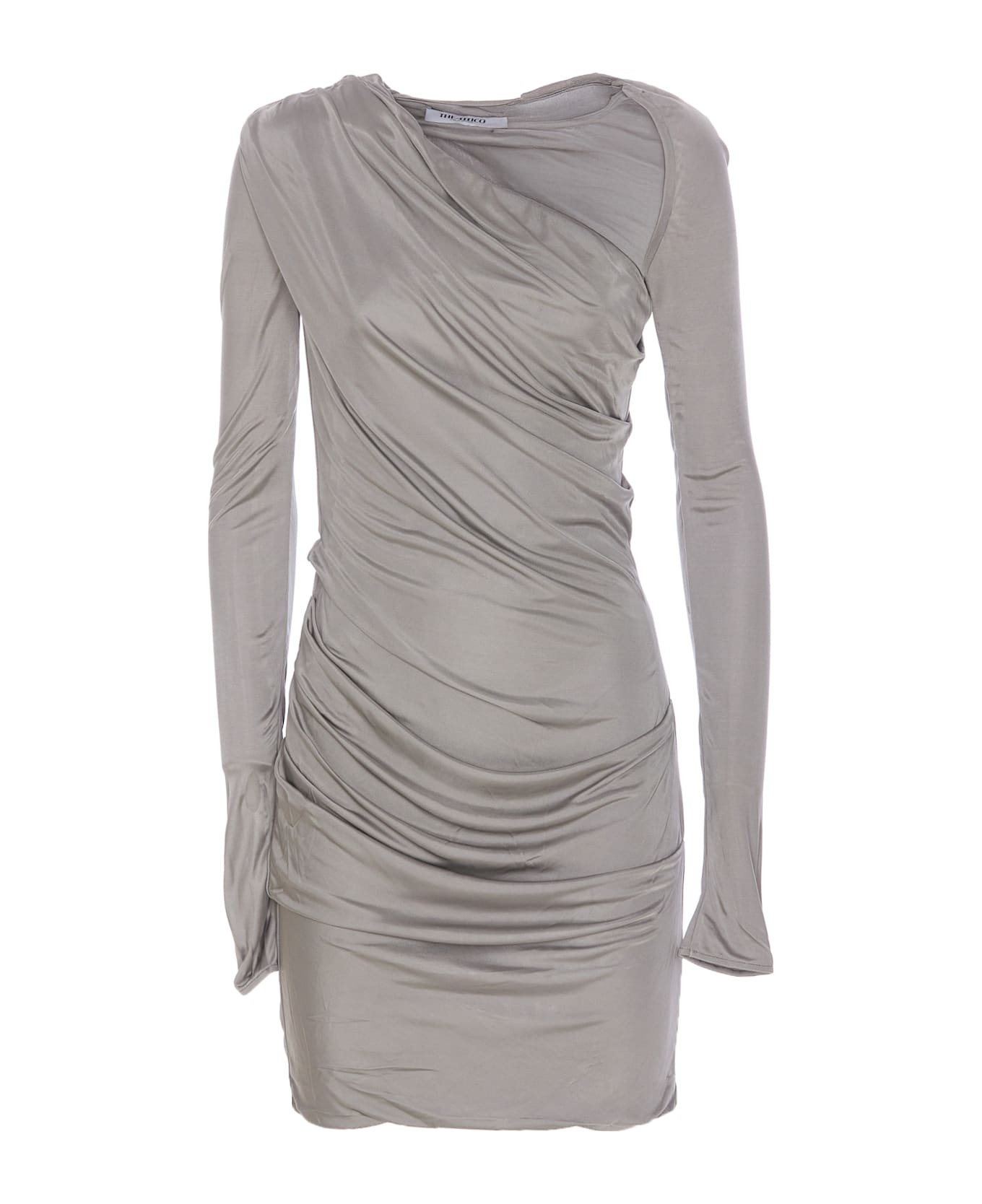 The Attico grey mini dress, long sleeves, asymmetrical collar, tight and elasticized fit, mini model Composition: 100% Viscose Made in: Italy Color: Grey Size and fit: - EU SIZE (IT) Model number: 250WCA00382VVV090AA084