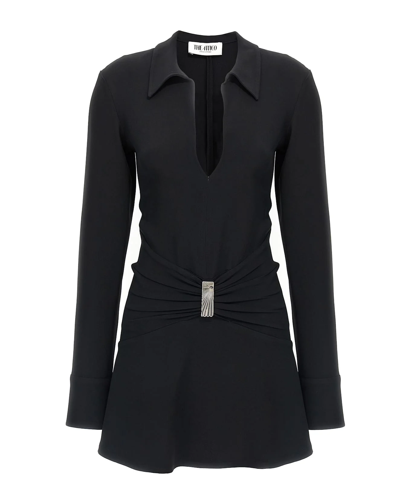 Cady polo shirt mini dress with V-neck and collar, front detail gathered at the waist, side zip closure, long cuffed sleeves. Composition: Made in: Italy Color: Black Size and fit: - true to size fit Model number: 251WCA00449100