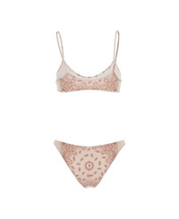 Pink Bikini With Spaghetti Straps And All-over Print In Tech Fabric Stretch Woman