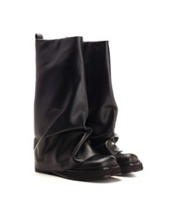''Robin'' combat boot in black calfskin with multi-layered monobloc sole, voluminous and flared upper, round toe. Composition: 100% calf leather, bos taurus farm raised coo: North America, Insole and Lining: 100% calf bos taurus farm raised coo: Pakistan, Sole: 80% polyurethane, 20% bos taurus farm raised coo: Europe. Made in: Italy Color: Black Model number: 241WSH00798LBT019AA100