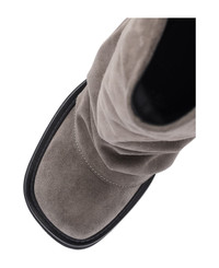 The Attico 'Robin' combat boots in taupe suede with draped details, square toe, silver metal logo on the top tab at the back, rubber sole. Composition: 100% Calf Leather Made in: Italy Color: Taupe Model number: 250WSH00798LBT040AA215