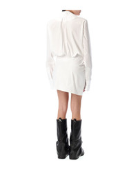 Striped Mini Shirt Dress By The Attico. Featuring: Striped Cotton Poplin Front Overlap Closure Drape Details Long Sleeves Lgo Embroidery At Chest Model Is 1,70 M And Wears Size 40 Composition: 100% cotton Made in: Italy Color: WHITE Model number: 250WCA00394CCC052001