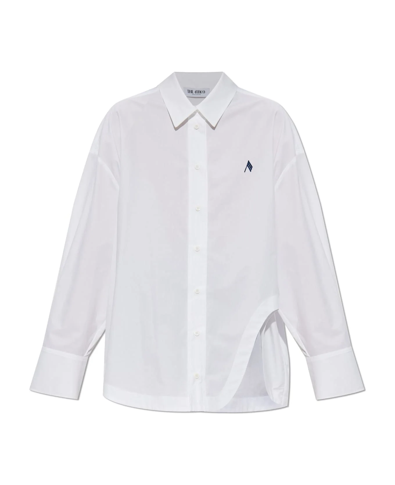 Embodying the spirit of confident femininity, the Logo Shirt by The Attico is a sophisticated interpretation of timeless shirting. Crafted from smooth, high-quality cotton fabric, its classic silhouette is rendered in a pristine white hue, elevated by an effortlessly oversized cut with elongated back and straight, wide long sleeves. The structured collar and refined button placket, adorned with petite white buttons, lend a touch of tailored elegance. A striking yet minimalist embroidered navy logo graces the chest, marking this piece as a symbol of luxury and unmistakable design pedigree. Statement wide cuffs and crisp lines reflect The Attico's vision of individuality and bold modernity, making this shirt an essential foundation for avant-garde and classic ensembles alike. Why choose this product? Exquisite cotton fabric for enduring comfort and elegance Distinctive oversized cut for a modern, versatile fit Embroidered designer logo for an exclusive touch Iconic design from the celebrated The Attico collection Perfect harmony of polished tailoring and contemporary ease Composition: 100% Cotton 100% Cotton Made in: European Union Color: White Model number: 251WCH00004CCC052AA