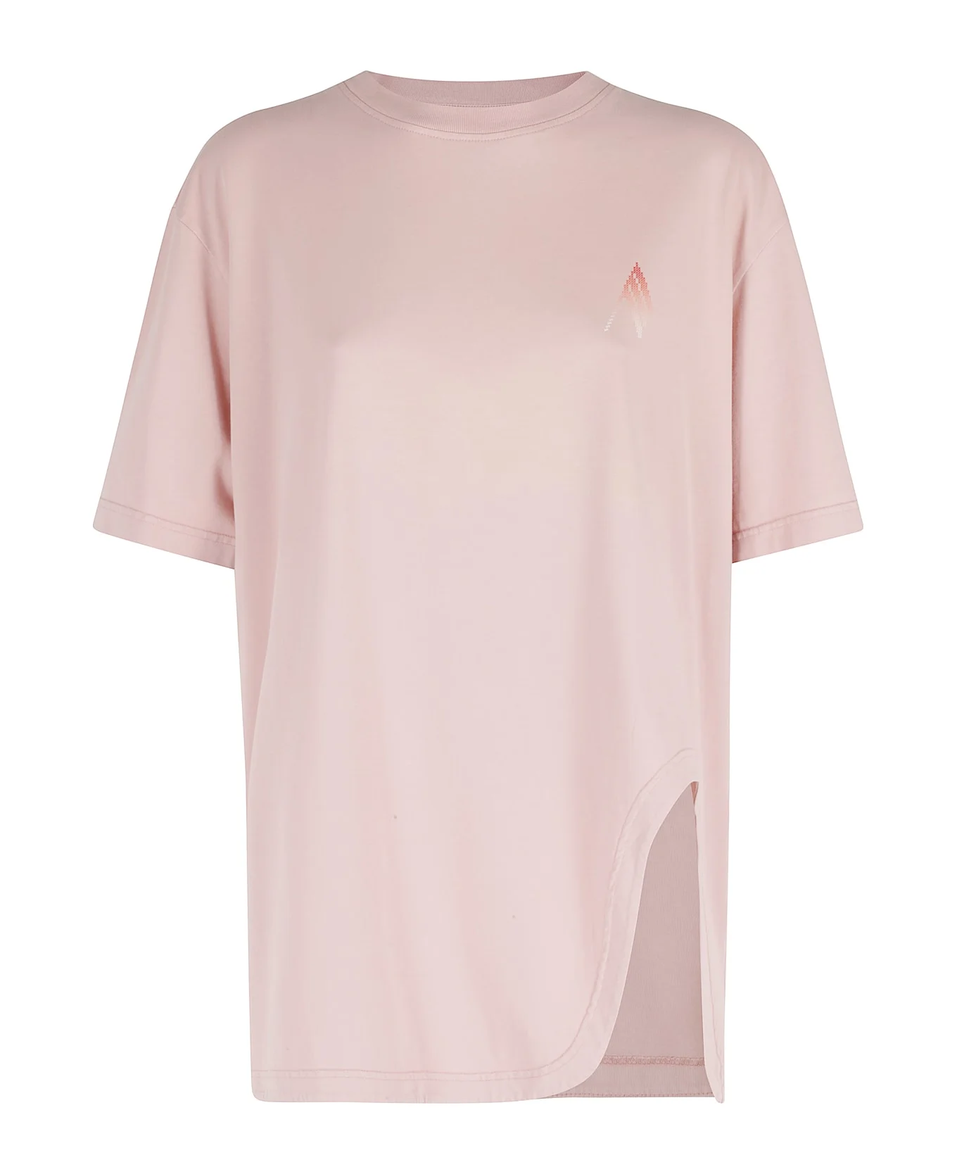 Category: T-shirt Item: T-shirt Brand: The attic Color: Pink Neckline: Crew Neck Details: Soft side slit, back graphic SIZE AND FIT Fit: Oversize Fit: Oversize Line: Straight Length: Long Sleeve Length: Short Made in: Portugal Color: Rose Model number: 260WCT00350JJJ025PC|098