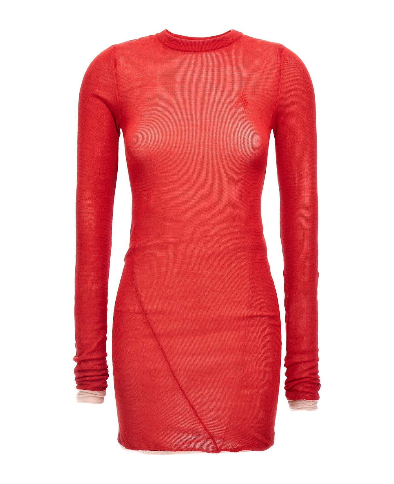 Two-material two-material knit mini dress, crew neck, long sleeves, tone-on-tone logo embroidery on the front. Composition: 86% cotton 12% md 1% ws Made in: Italy Color: Red Size and fit: - true to size fit Model number: 250WCA00340410