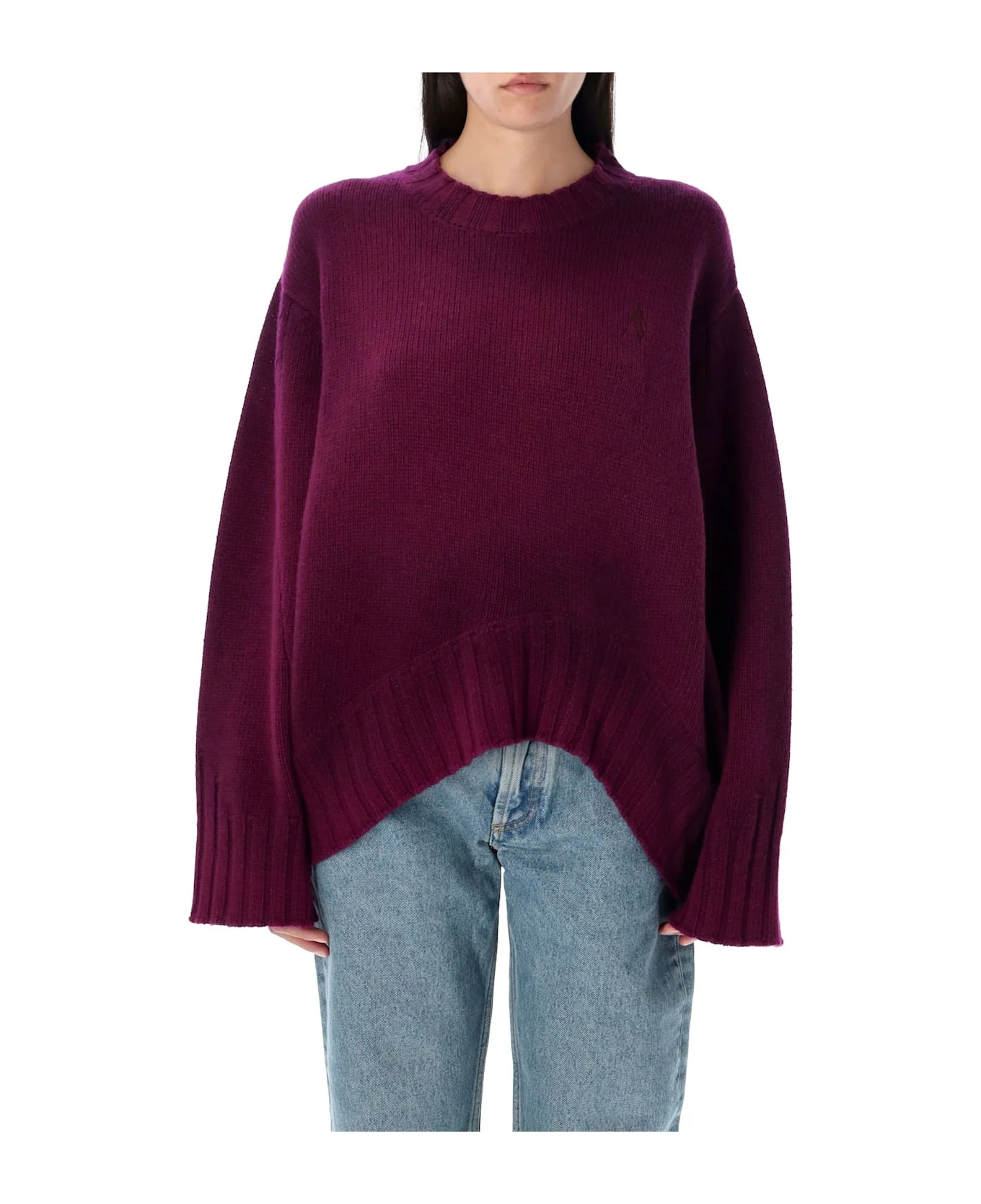 Wool Cashmere Sweater By The Attico. Featuring: Wool Cashmere Blend Knit Crewneck Long Sleeves Dropped Shoulder Ribbed Neck, Cuffs And Hem Asymmetric Hem Embroidered Logo At Chest Oversized Fit Giulia Is 1,70 M And Wears Size 40 Composition: 80% wool, 20% cashmere Made in: Croatia Color: BURGUNDY Model number: WCK00126KWS008SP114