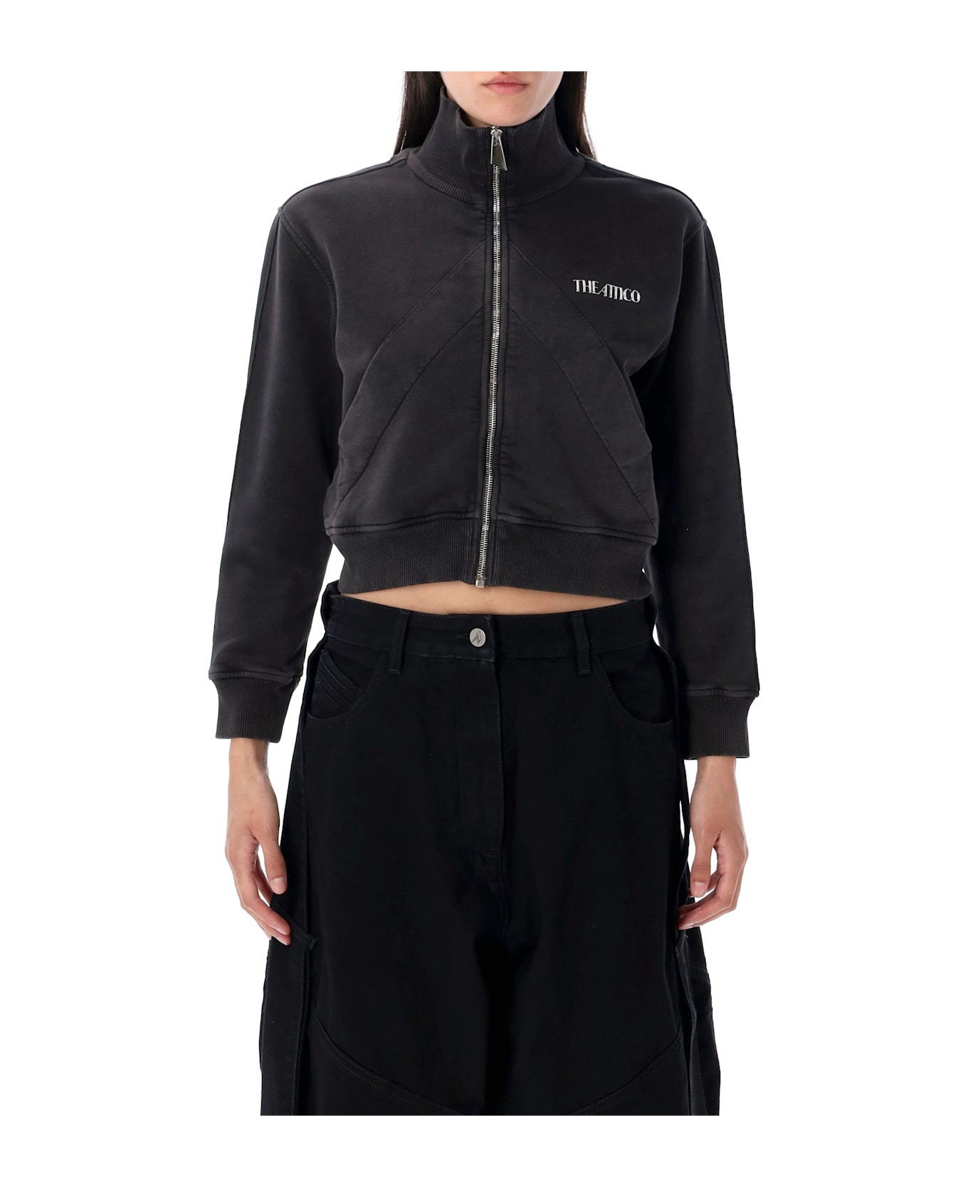 Zip-up Cropped Cotton Sweatshirt By The Attico. Featuring: High Neck Full Zip Closure Logo At Chest Long Sleeves Front Pockets Rib Trims Cropped Faded Effect Model Is 1,70 M And Wears Size 40 Composition: 100% cotton Made in: Portugal Color: FADED BLACK Model number: WCF00022JJF003AA615
