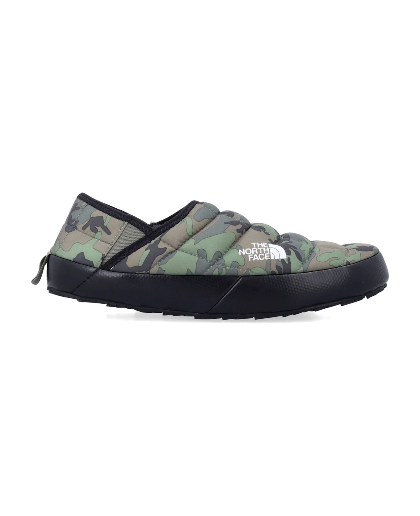 Thermoball V Traction Mules By The North Face. Featuring: Water-repellent, Recycled P. e. t. Ripstop Upper Thermoball Insulation Logo Print Oso Fleece Collar Lining Collapsible Heel Rubber Sole Composition: 100% recycled polyester Sole, 100% rubber Made in: Vietnam Color: CAMO GREEN Model number: NF0A3UZN33U