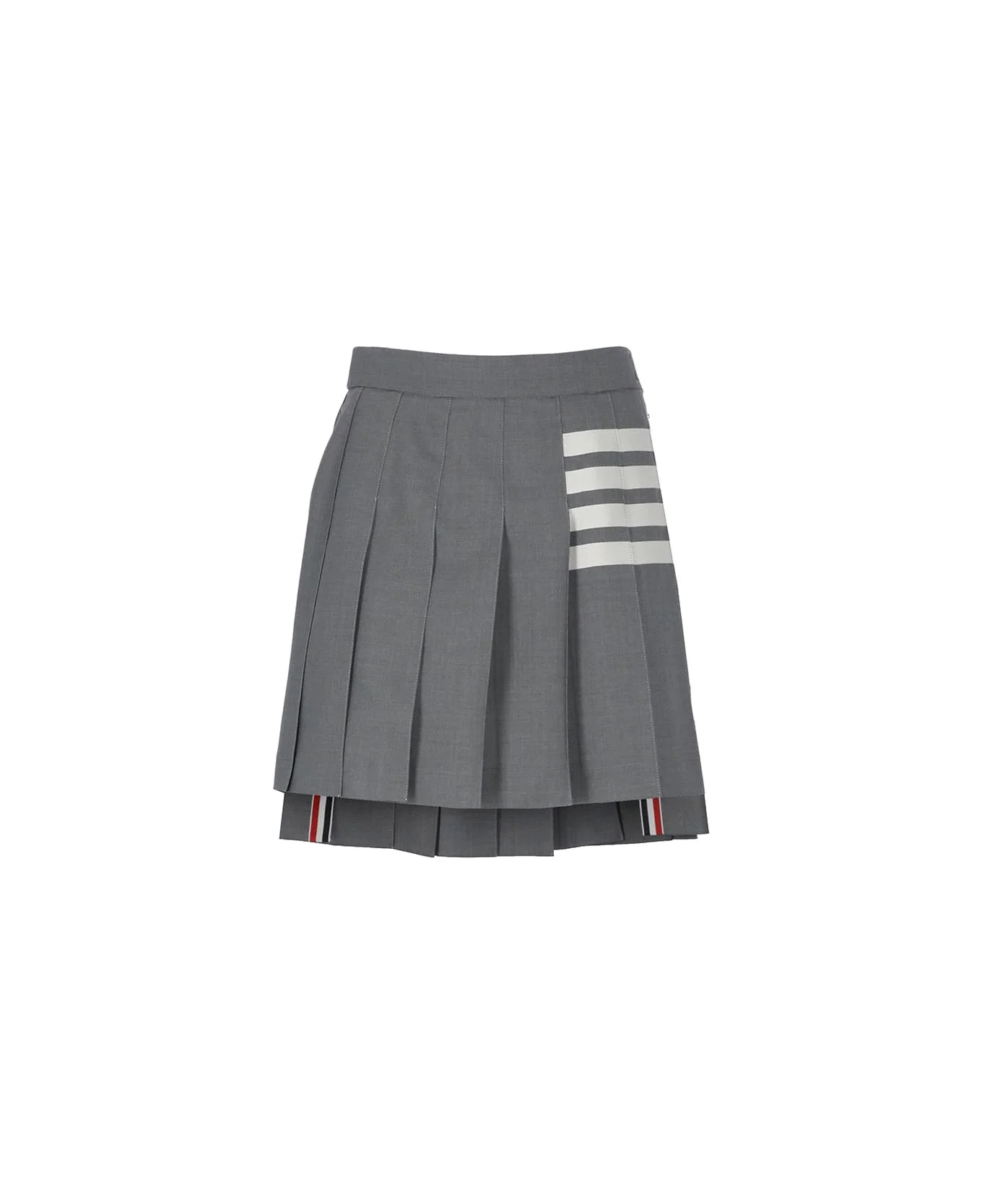 Medium Grey Plain Weave Mini Pleated 4-Bar Skirt