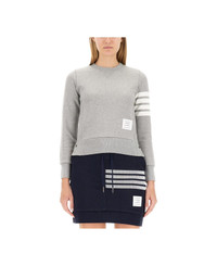 Light Grey Loopback Jersey Knit Engineered 4-bar Stripe Crew Neck Pullover