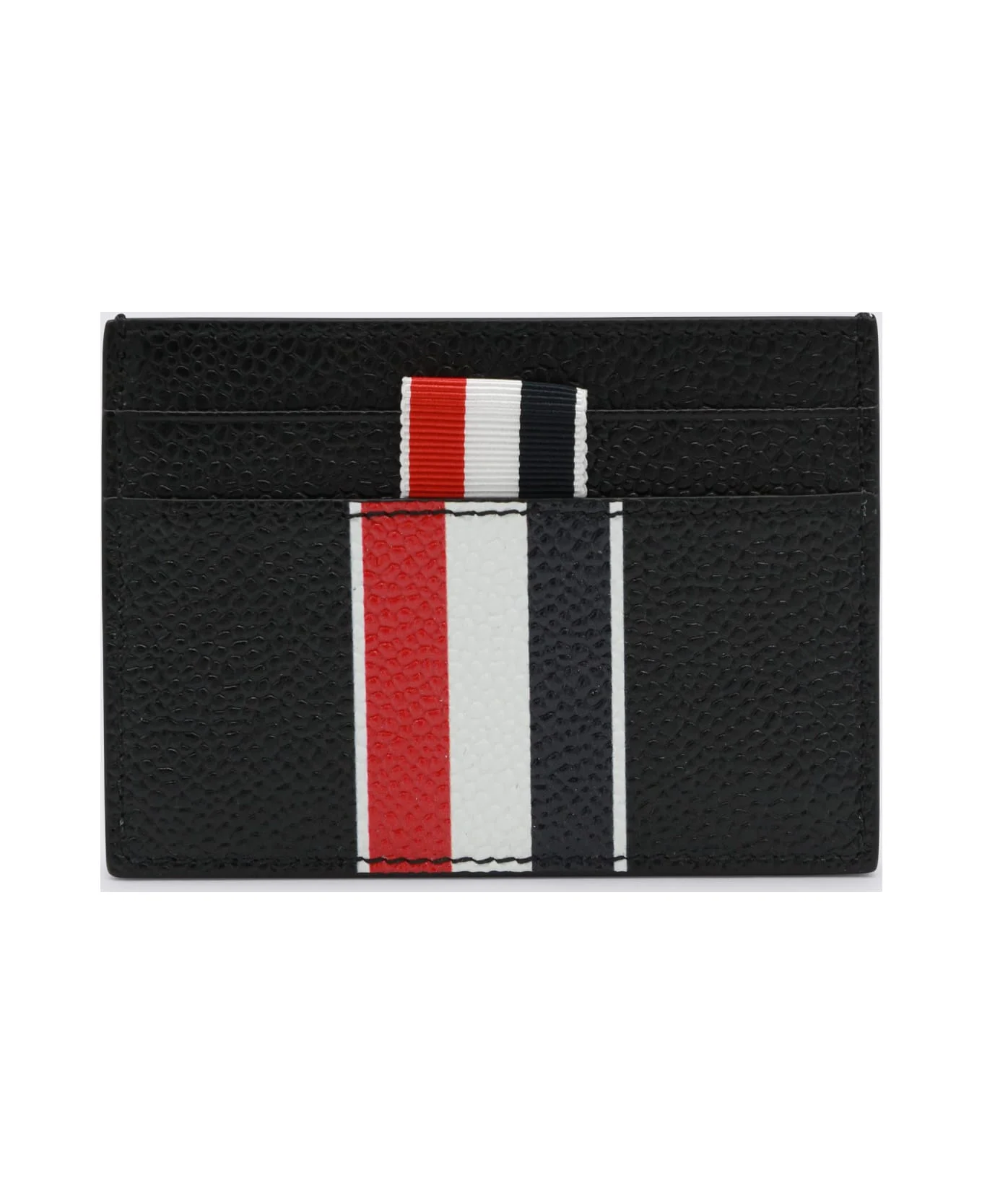 Black card holder from Thom Browne featuring rectangular shape, Tricolor Stripe band detail, pebble grain leather and card slots. Composition: _, 100% Polyester Made in: Italy Color: Black Model number: UAW090A00198001