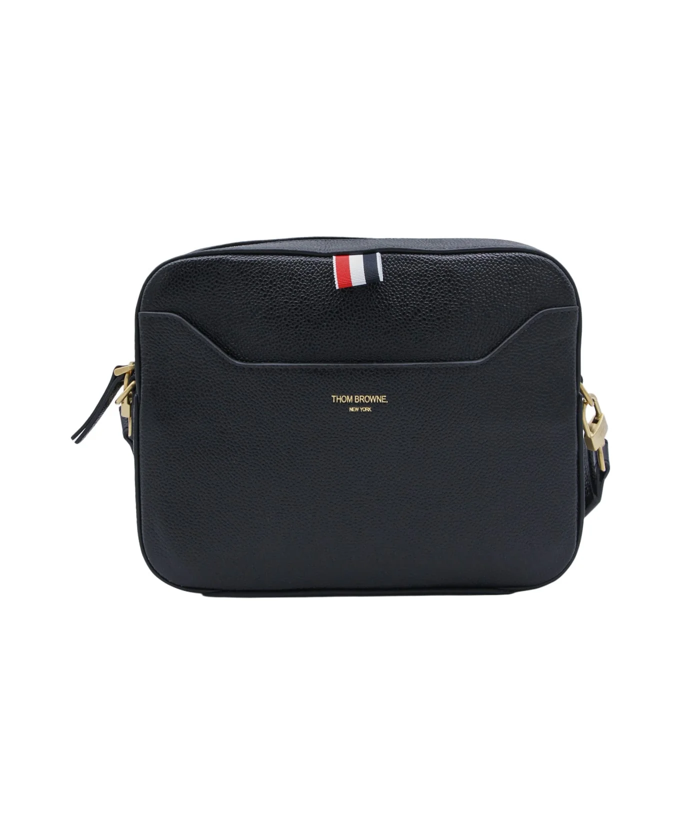 Black crossbody bag from Thom Browne featuring rectangular shape, adjsutable shoulder strap, frontal logo print, zip closure and main compartment. Composition: _, 100% Polyester Made in: Italy Color: Black Model number: MAG421A00198001