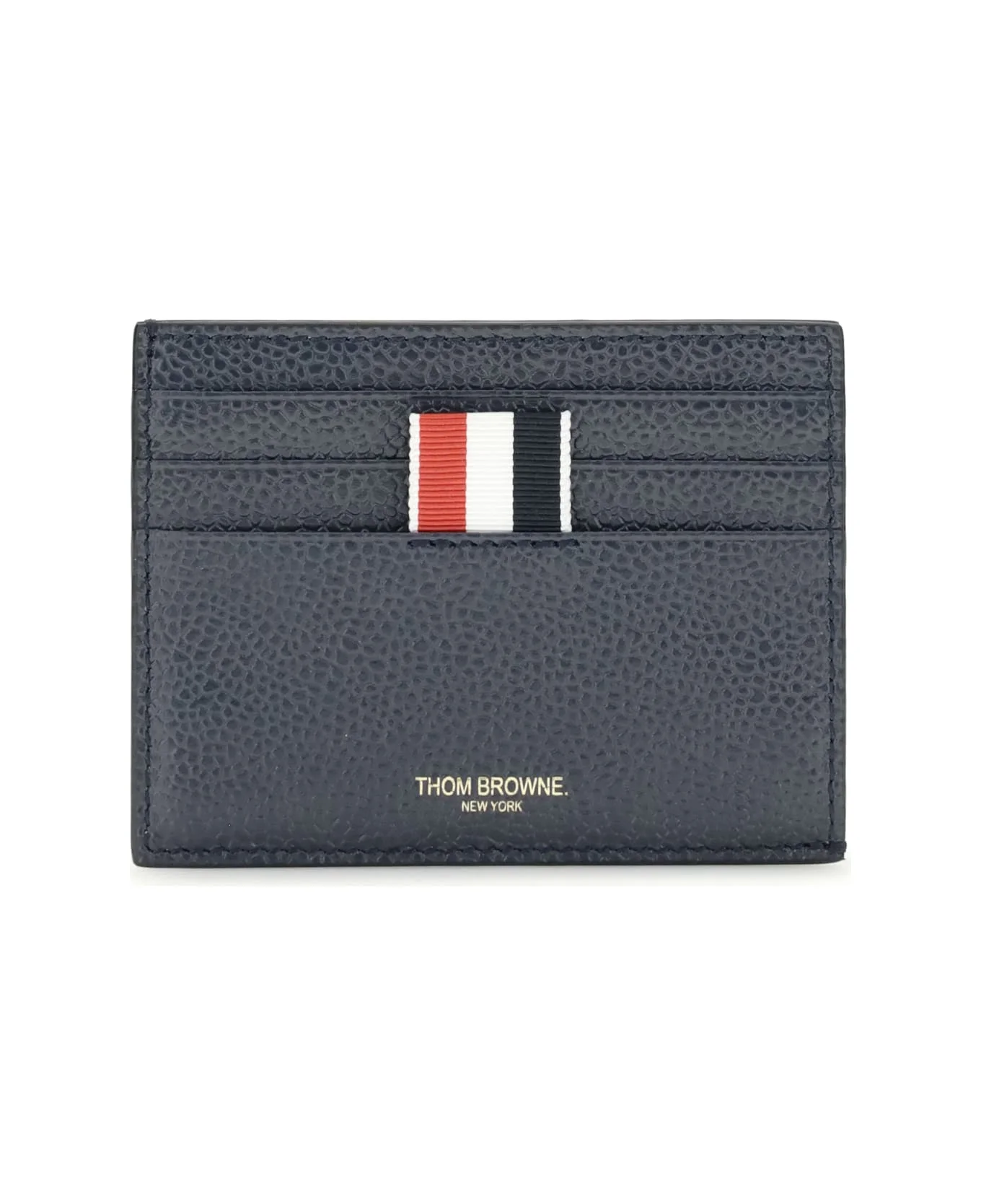 The leather card holder by thom browne combines functionality with minimalist style. it features card slots on the front and back for easy card organization, while a bill pocket provides practicality. the iconic tab in the brand's colors adds a distinctive detail, accompanied by the iconic monogram press-stud on the front, a symbol of elegance and recognition. Composition: 100% % Calf Leather Bos Taurus Made in: Italy Model number: MAW031L00198415