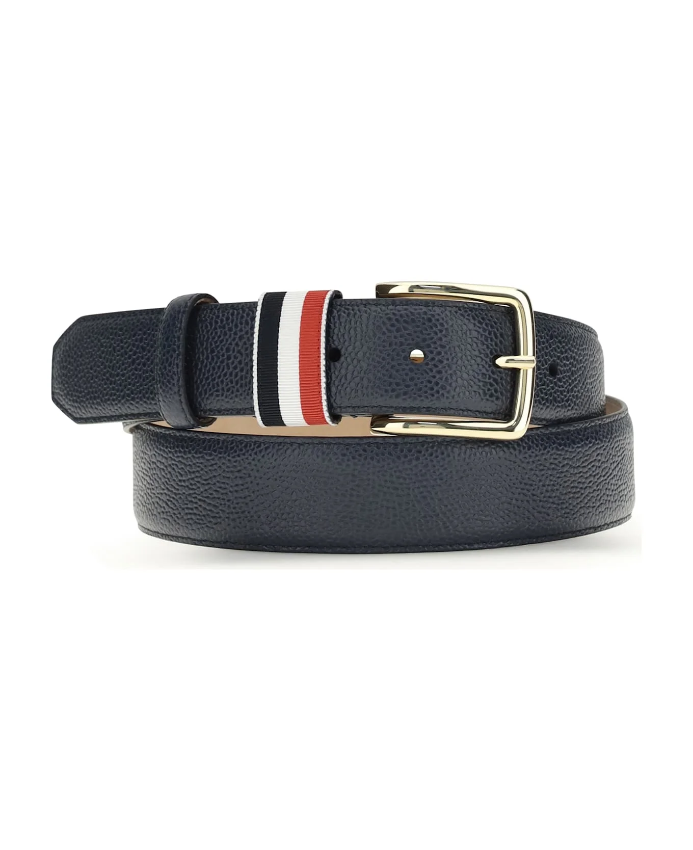 The hammered leather belt by thom browne combines craftsmanship and distinctive style. featuring a geometric buckle and classic detailing with the iconic tricolor bands, it lends a recognizable and refined touch to any look. width 3. 5 cm, ideal for versatile, everyday use. Composition: 100% % Calf Leather Bos Taurus Made in: Italy Model number: MCX039A00198415