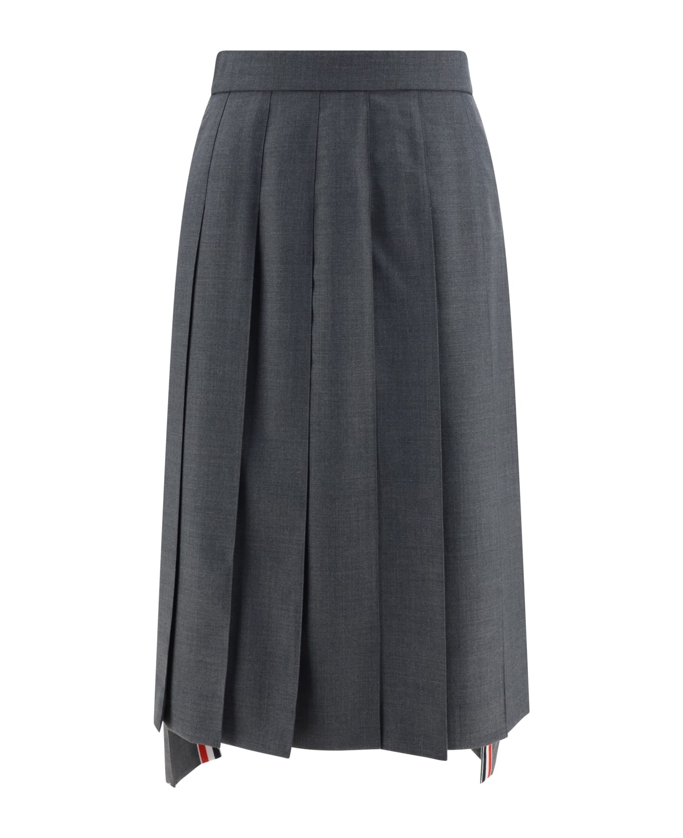 Medium Grey Super 120's Twill Dropped Back Below-the-knee Pleated Skirt