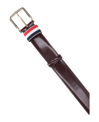 Thom Browne Striped Loop belt in brown calf leather with gold metal buckle on the front, multicolor grosgrain loop, adjustable. Composition: 100% Calf Leather Made in: Italy Color: Brown Size and fit: - altezza 3.5 cm Model number: MCX039AL0045205