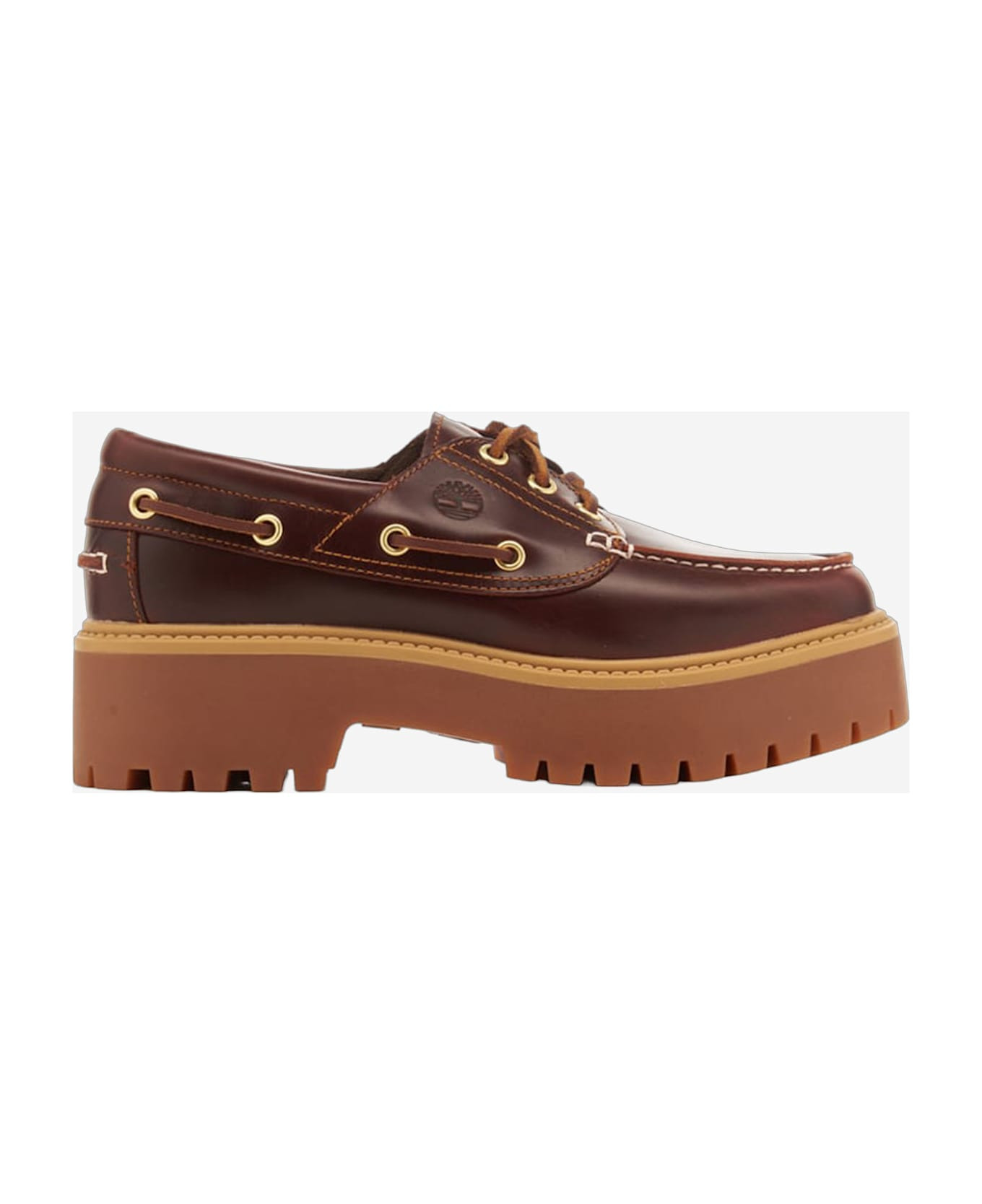 Loafers made from Timberland® Premium Leather and ReBOTL fabric 360° lacing Logo details Preformed rubber sole Brown Made in Bangladesh Composition: 100% leather Made in: Bangladesh Color: Brown Size and fit: - Size 7 Model number: TB0A2QDMD571