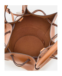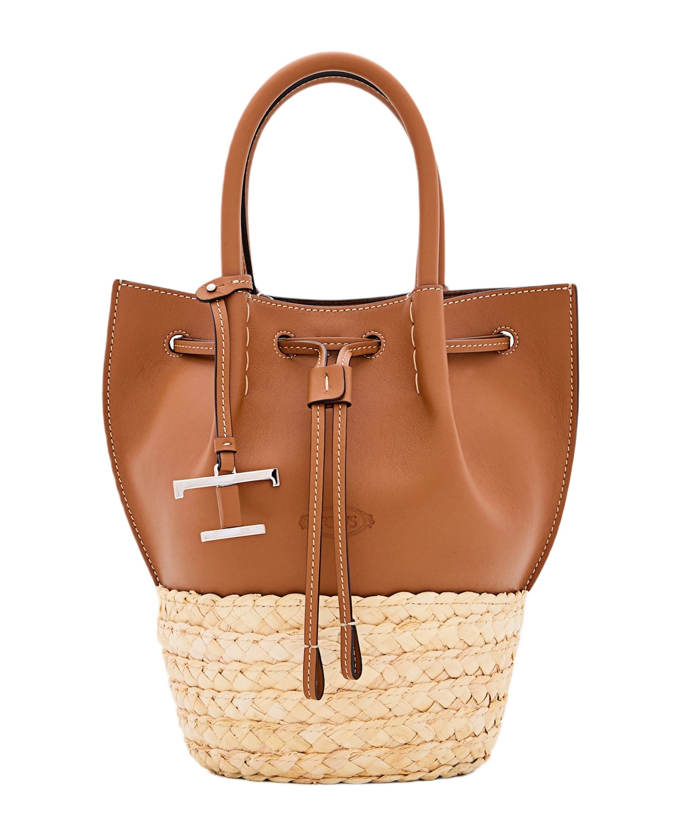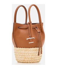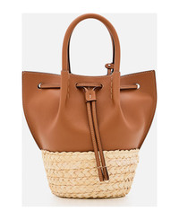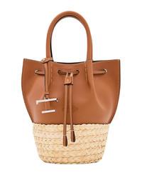 BUCKET BAG IN STRAW AND LEATHER MINI - BROWN, NATURAL
