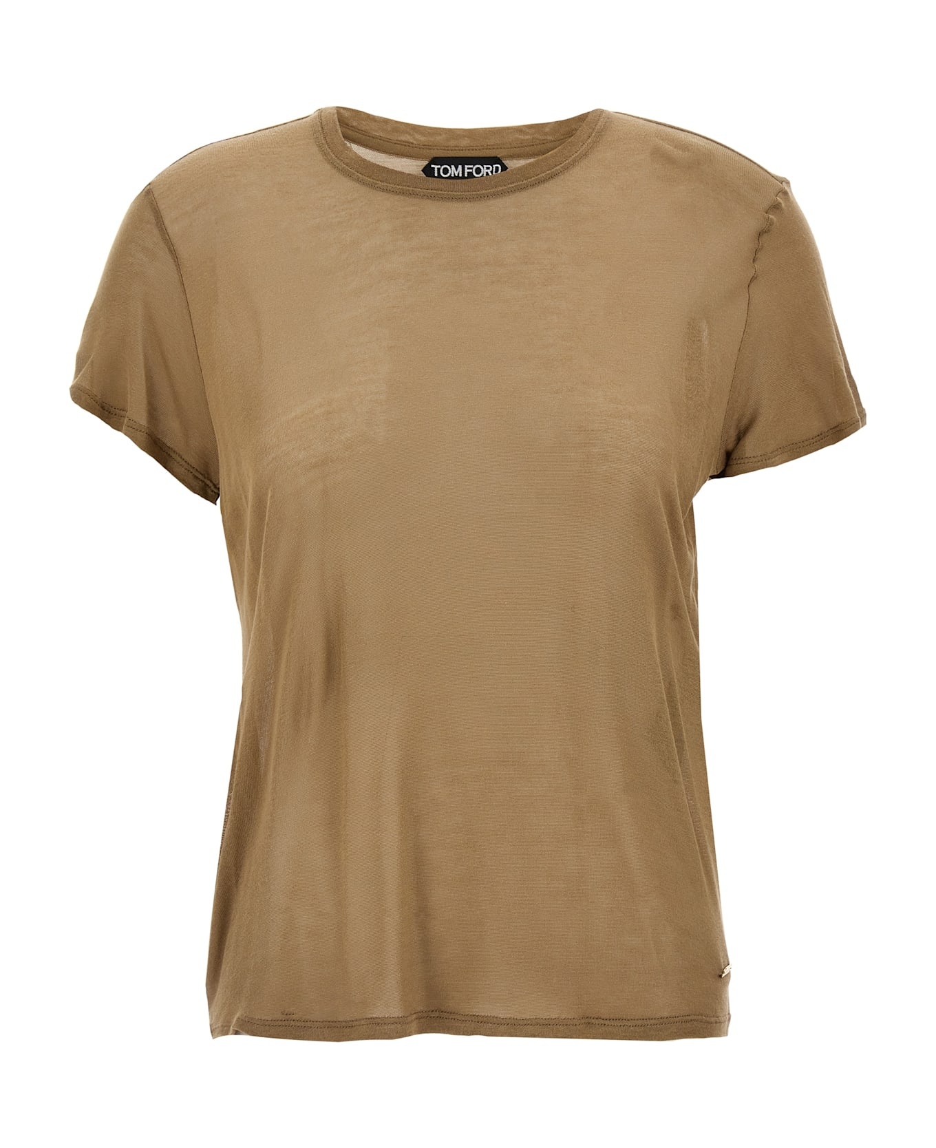 Bamboo viscose t-shirt, front metal logo plate, crew neck, short sleeves, side vents. Composition: 100% viscose bamboo Made in: Italy Color: Brown Size and fit: - true to size fit Model number: TSJ567JEX139JB172