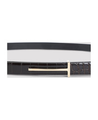 To Ford Espresso Brown Calf Leather Belt. Pure espresso brown calf leather belt, adjustable design, front gold-tone signature T-logo buckle. Made in: Italy Color: BROWN Size and fit: - H: 1,4cm Model number: WB333LCL395P1B087