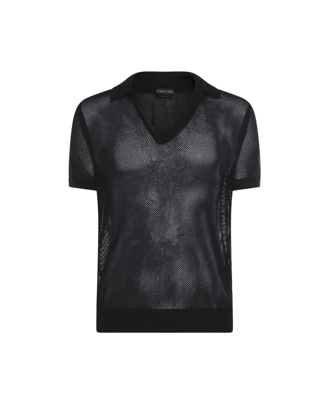 Black cotton polo shirt from Tom Ford featuring v neck and collar, short sleeves, trasparence and regular fit. Composition: _, 50% Cotton, 50% Si Made in: Italy Color: Black Model number: KPS040YMC046NAA