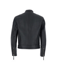 Jacket Black High neck with buttons Long sleeves Front zip closure Three front zip pockets Zipped cuffs Straight hem Leather Regular fit Composition: 100% Calf Made in: Italy Color: Black Model number: LXI012LMG030LB999