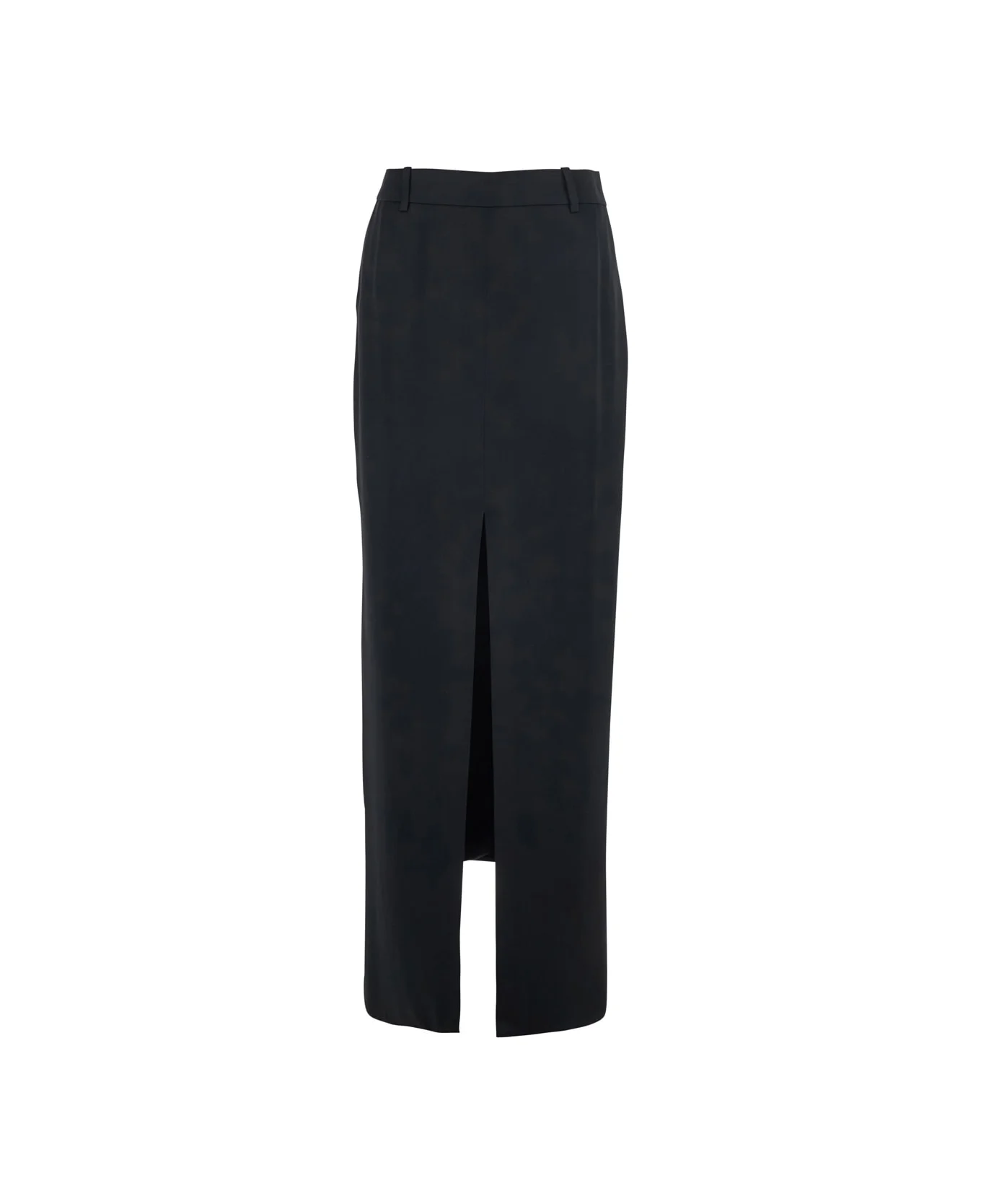 Black Long Skirt With Concealed Side Zip Closure And Single Front Slit In Viscose Blend Woman