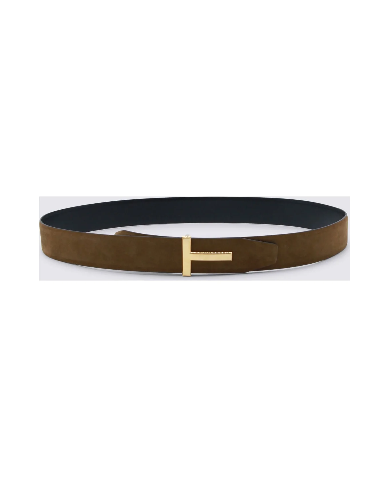 Brown leather belt from Tom Ford featuring gold tone T buckle fastening, suede lining and adjustable size. Composition: _, 100% Le Made in: Spain Color: Brown Model number: TB178LCL504G1B014
