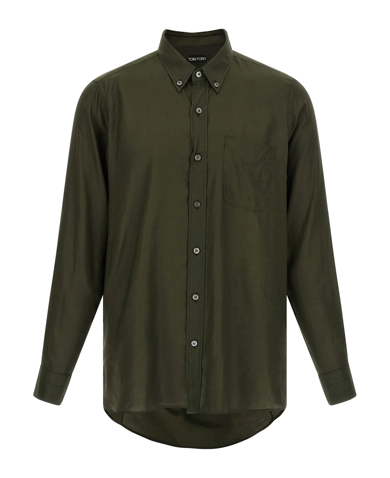 Fluid gabardine shirt with button-down style, pocket, front button closure, long cuffed sleeves. Composition: 100% lyocell Made in: Italy Color: Green Size and fit: - slim fit - COLLAR size Model number: HSO002FMT058GAL