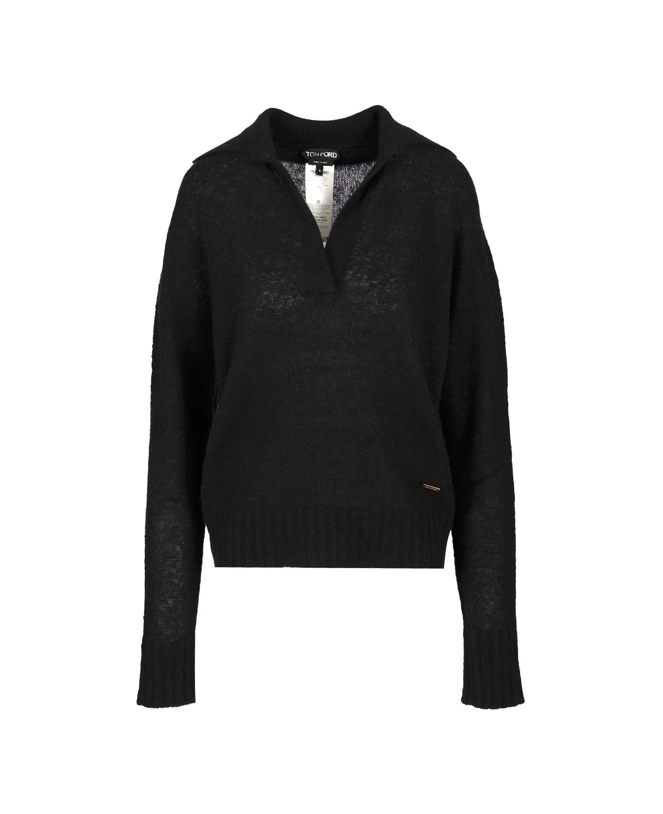Cashmere and silk polo shirt with ribbed cuffs and hem and metal plate with Tom Ford logo. Composition: 74%Cashmere - 26%Silk Made in: Italy Color: BLACK Model number: MAK1391YAX921LB999