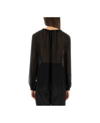 LONG SLEEVE SILK BLOUSE WITH DRAWSTRINGS