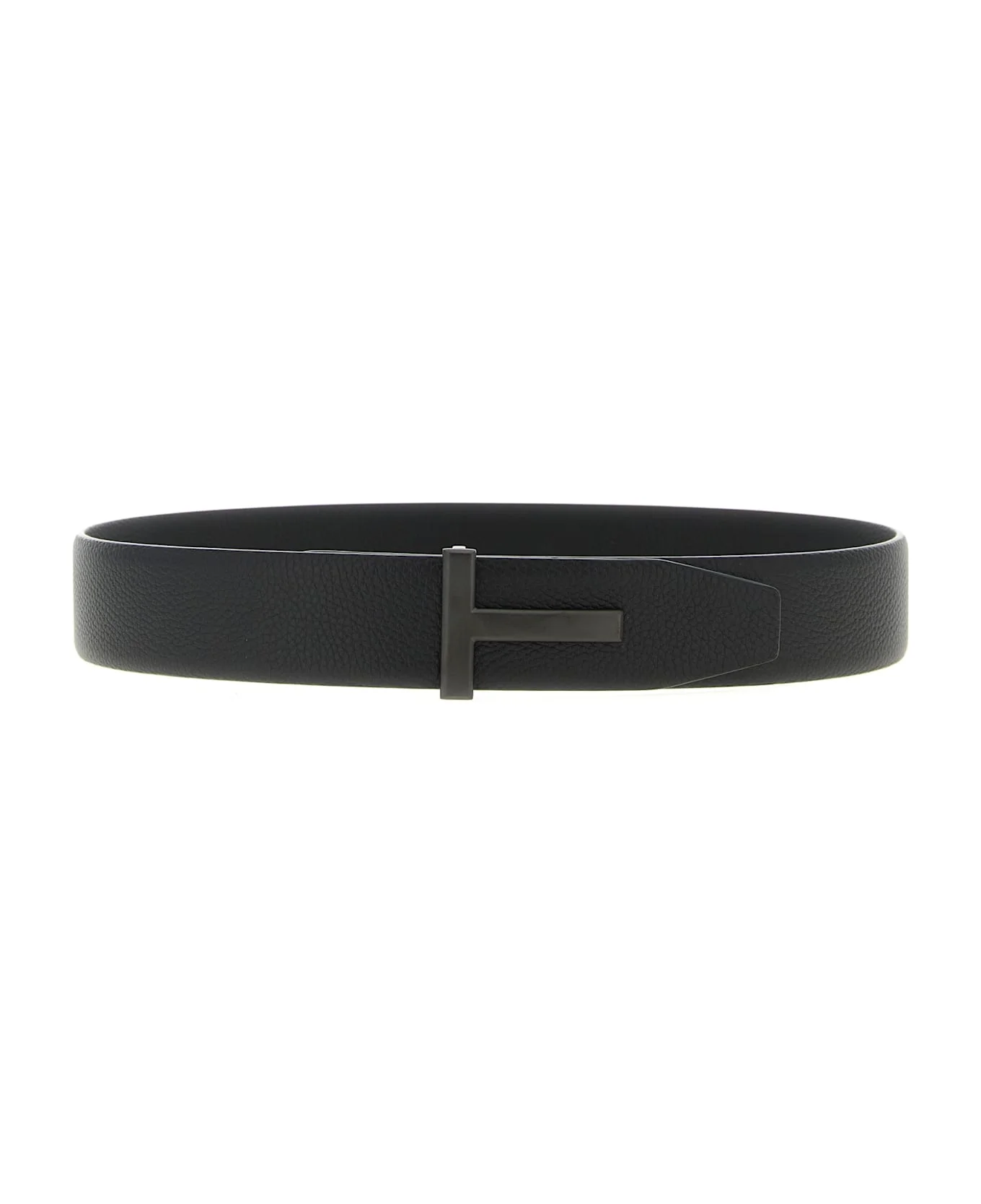 Soft hammered leather belt with metal buckle with tone-on-tone matte finish. Composition: 100% calfskin leather (Bos Taurus) Made in: Italy Color: Black Size and fit: - H 4 cm Model number: TB178LCL236LNAA