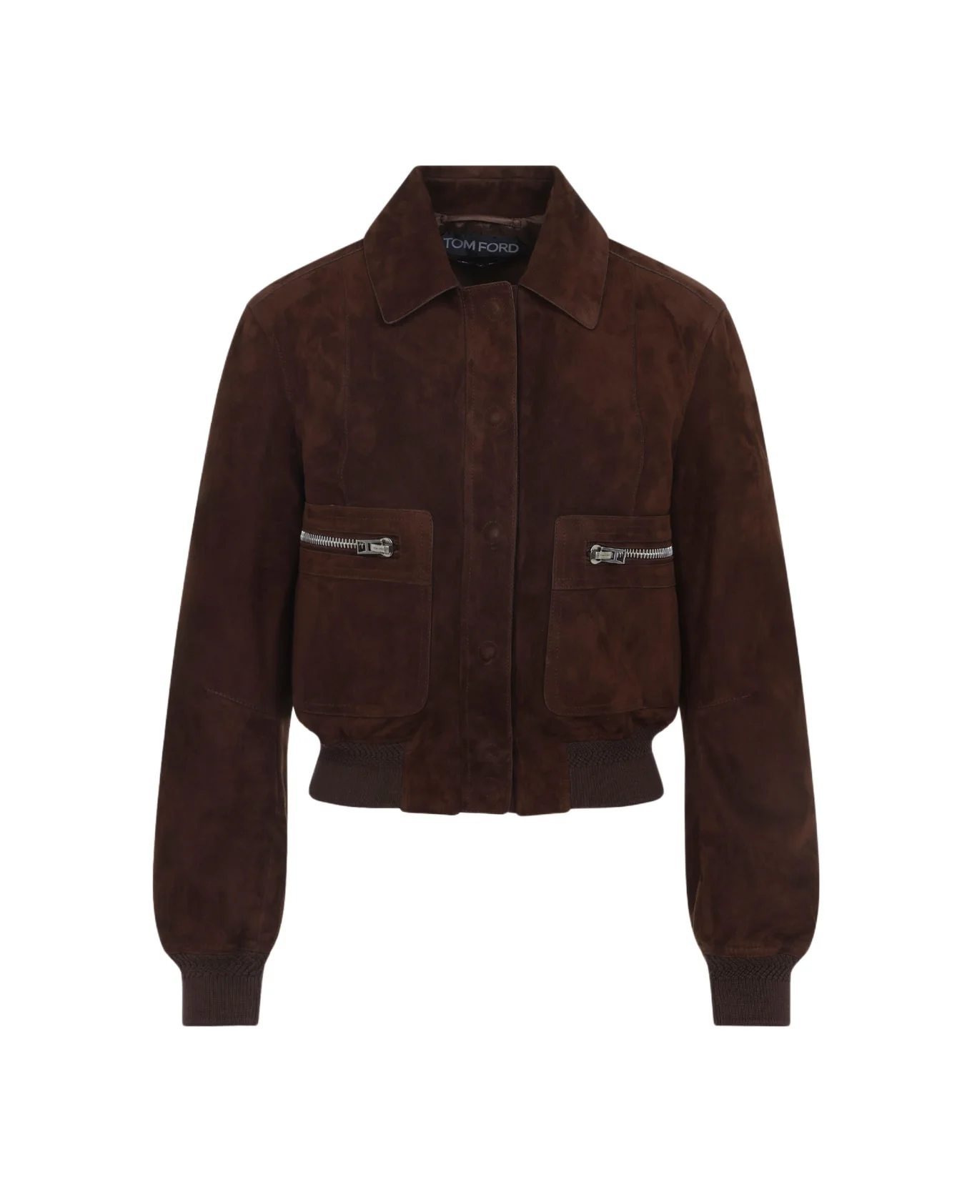 Lamb Suede Bomber Jacket from Tom Ford Composition: 100% Lamb Leather Made in: Italy Color: Ebb Warm Chocolate Model number: CSL794LEX417EBB
