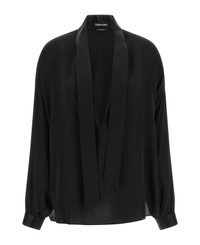Washed silk georgette blouse with tonal satin details, lavalliere neck with V-neck, long sleeves with cuffs and dropped shoulders, side slits. Composition: 100% silk Made in: Italy Color: Black Size and fit: - Comfort fit Model number: CA3333FAX1507NAA