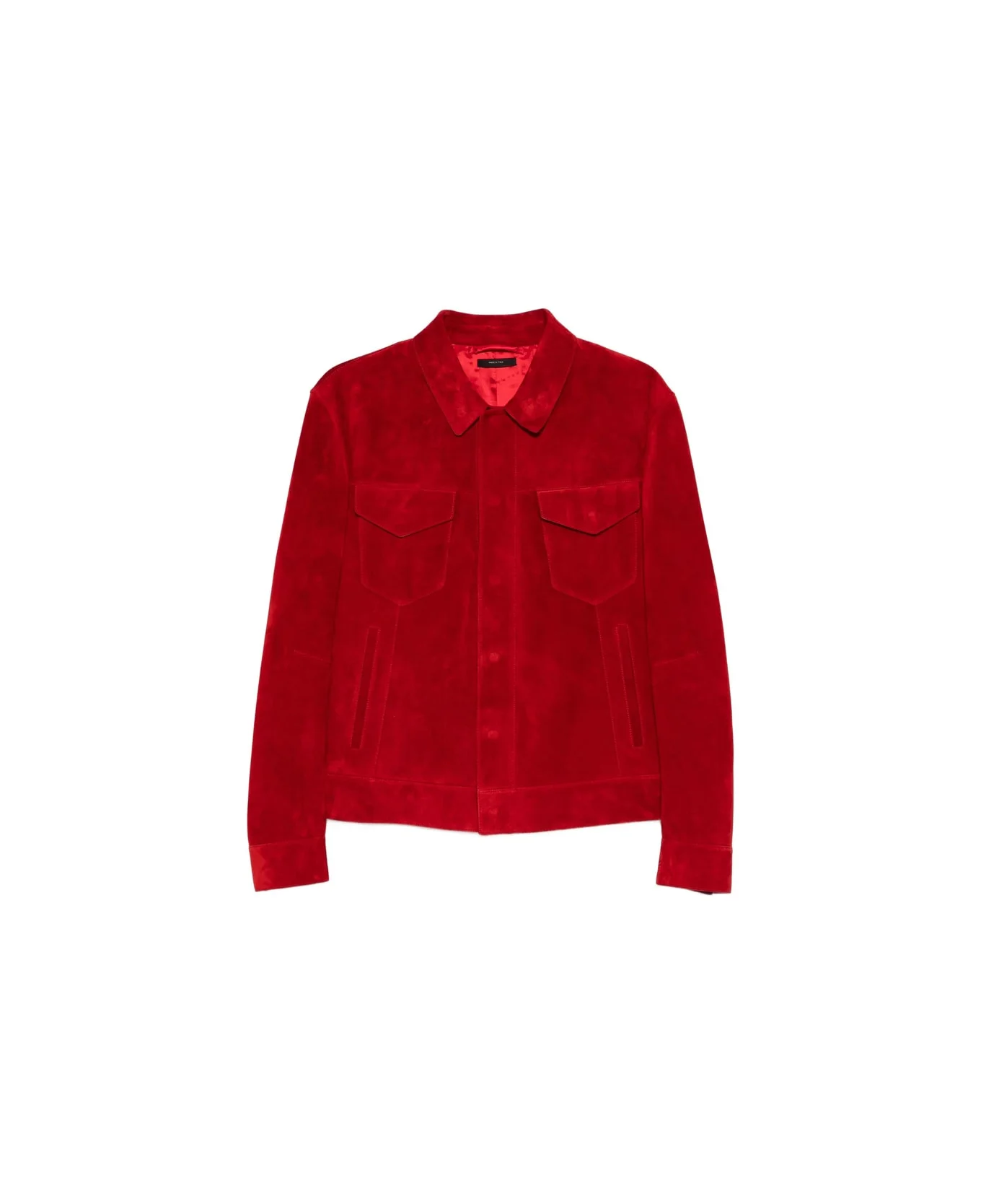 red press-stud fastening two chest patch pockets long sleeves buttoned cuffs Made in: Italy Color: RED Model number: LMS028LBI004