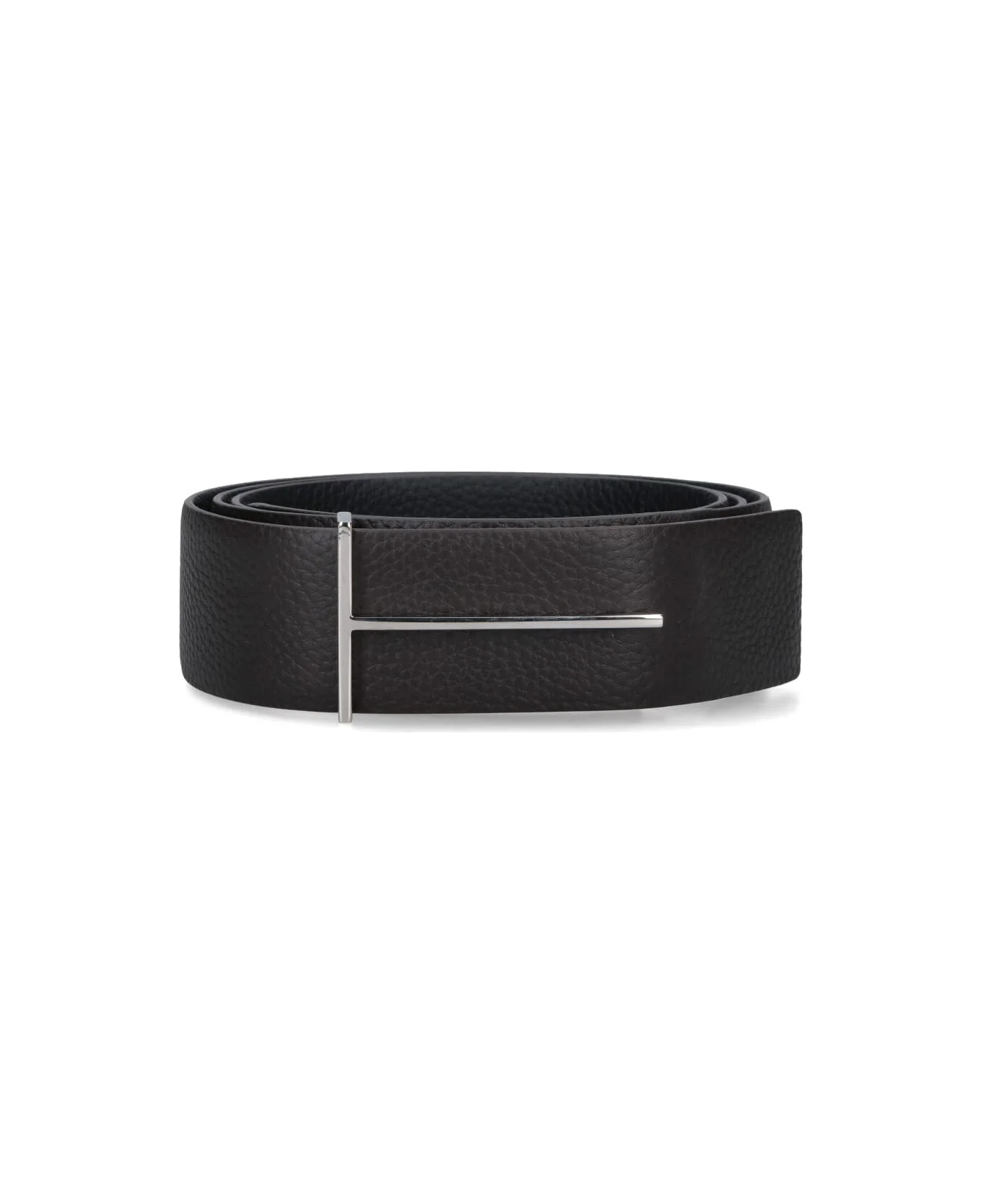 Tom Ford dark brown calf leather logo belt with silver metal "T" logo buckle at the front, adjustable. Composition: 100% Calf Leather Made in: Italy Color: Brown Size and fit: - altezza: 4 cm Model number: TB331LCL236SENB
