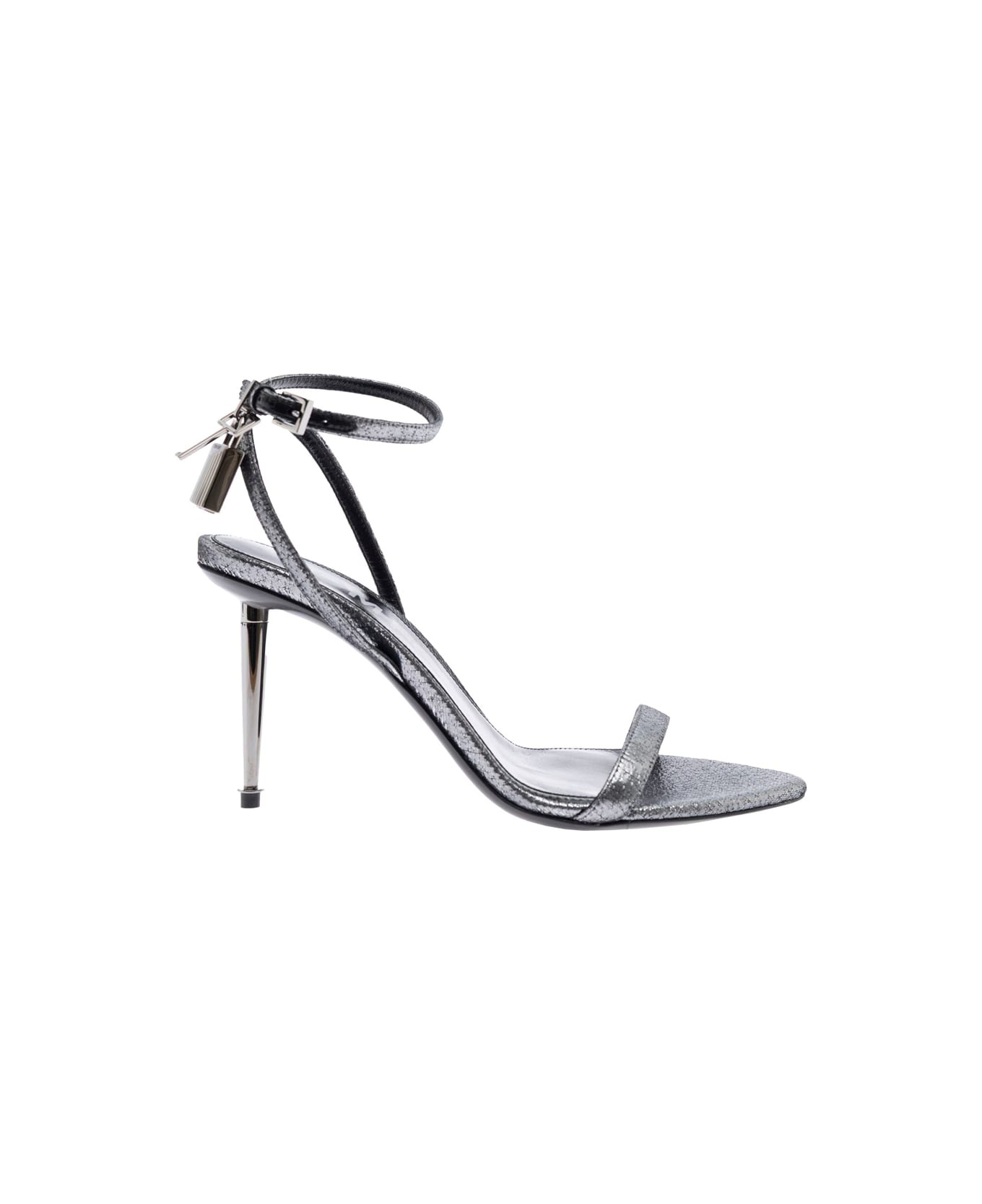 Metallic Sandals With High Stiletto Heel And Padlock Detail On The Ankle In Leather Woman