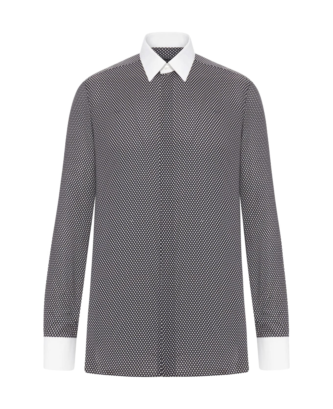 Hidden button closure and pointed collar Long sleeves with buttoned cuffs Contrasting profiles Classic fit 100% cotton SKU: HLVA03C0008NWA Made in: Switzerland Color: BLACK&WHITE Model number: HLVA03C0008NWA