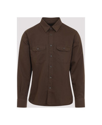 Tom Ford Military Green Cotton Shirt. Crafted from green cotton and linen drill, pointed collar, front button fastening, flap pockets on the chest, long sleeves with buttoned cuffs, back yoke and box pleat, round hem. Color: Gaq Bronze Olive Model number: HME001FMC295GAQ