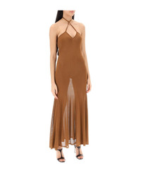 SLINKY VISCOSE JERSEY KNIT HALTERNECK MAXI DRESS
