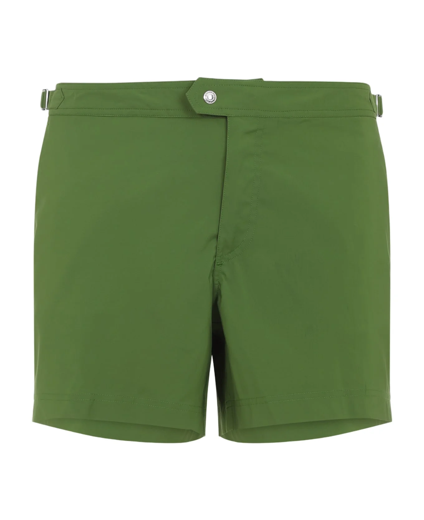 Tom Ford Green Polyester Swim Shorts. Crafted from green tech fabric, mid-waist, sliding tabs at the sides, front snap button and concealed zip fastening, side pockets, zip pocket on the back, lined. Made in: Italy Color: Gcl Artichoke Green Model number: BSS001FMN067GCL