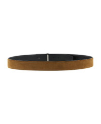 Adjustable reversible belt in suede and smooth leather with shiny metal logo buckle. Composition: 100% calfskin leather (Bos Taurus) Made in: Italy Color: Brown Size and fit: - H 4 cm Model number: TB178LCL504S1B014