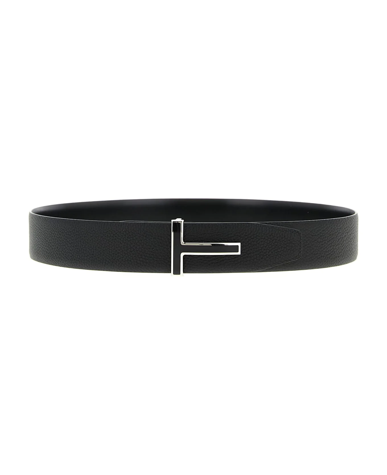 Reversible belt in hammered and smooth leather with shiny effect, enamelled metal logo buckle with silver trim. Composition: 100% calfskin leather (Bos Taurus) Made in: Italy Color: Black Size and fit: - H 4 cm Model number: TB247LCL237SNAA