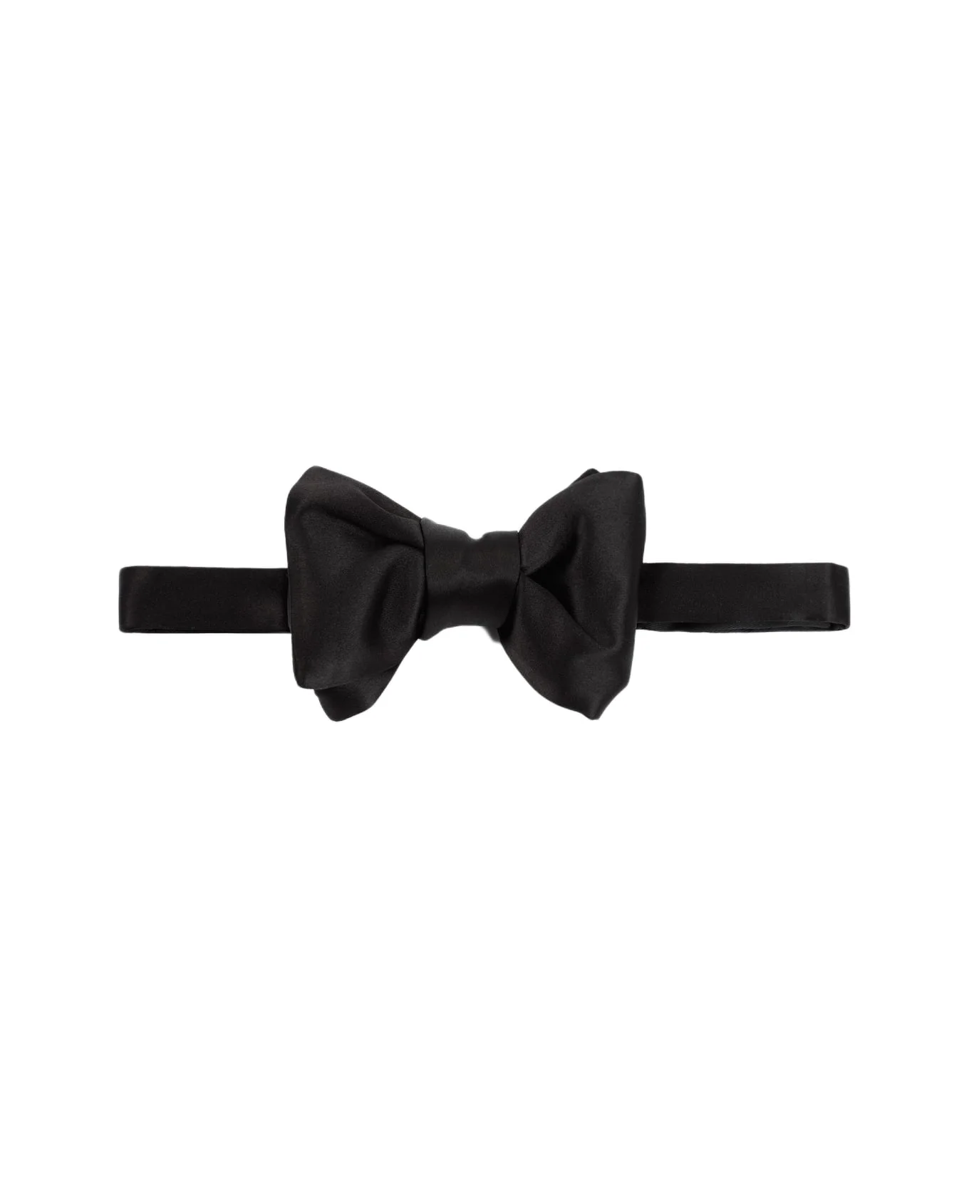 Tom Ford Black Silk Bow Tie. Crafted in pure black silk. Wrap-around style, pre-tied, back clip fastening. Made in: Italy Color: Black Model number: SRM003SPS05LB999