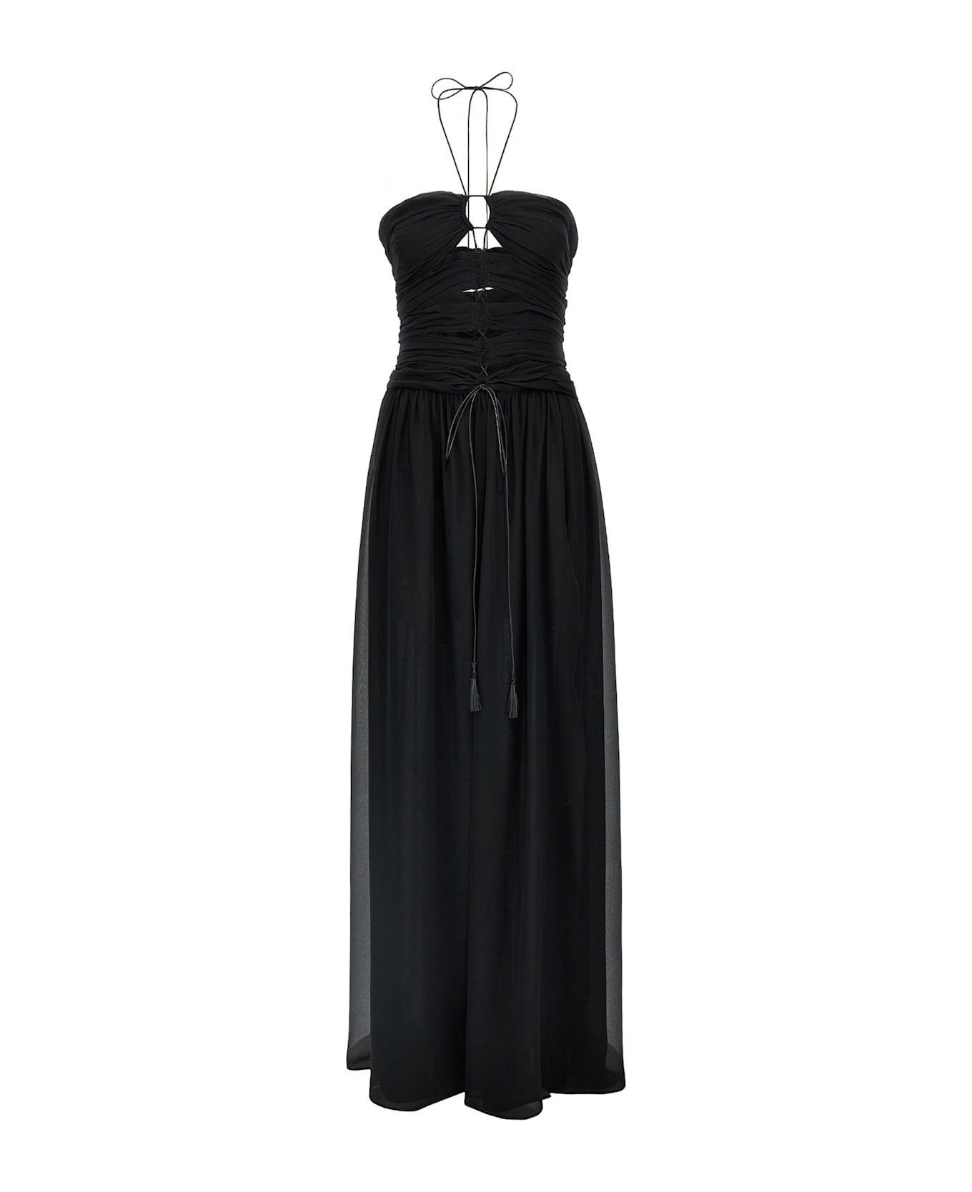 EVENING DRESS WITH DRAWSTRINGS AND CUT OUT DETAILS