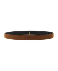 Reversible belt in smooth leather and nubuck, metal 'Slim T' logo buckle. Side A: brown nubuck leather Side B: smooth black leather Composition: 100% calfskin leather (Bos Taurus) Made in: Italy Color: Multicolor Size and fit: - H 2.8 cm Model number: TB330LCL504GEBU
