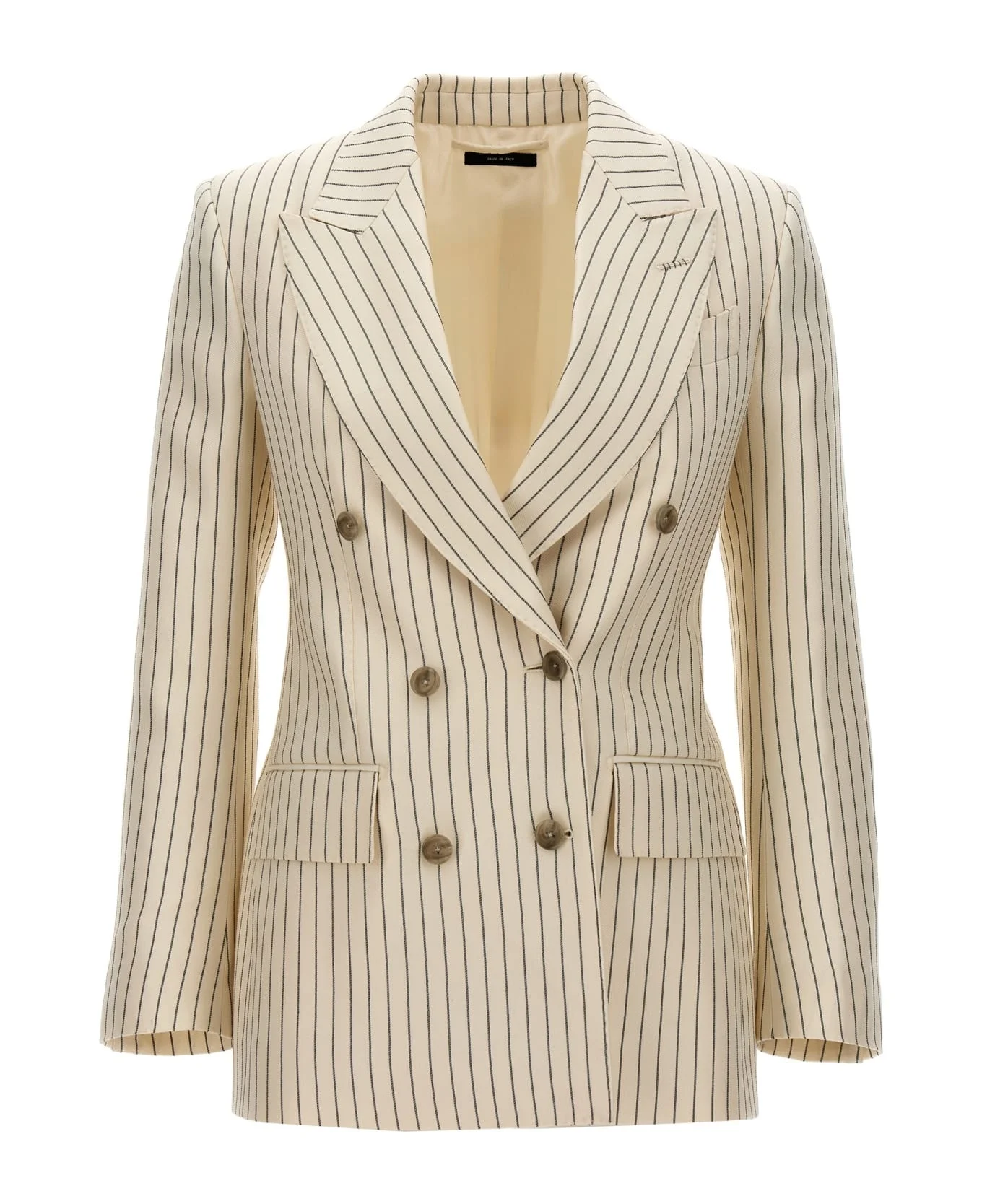 STRIPED WOOL AND SILK BLEND "WALLIS" DOUBLE BREASTED JACKET