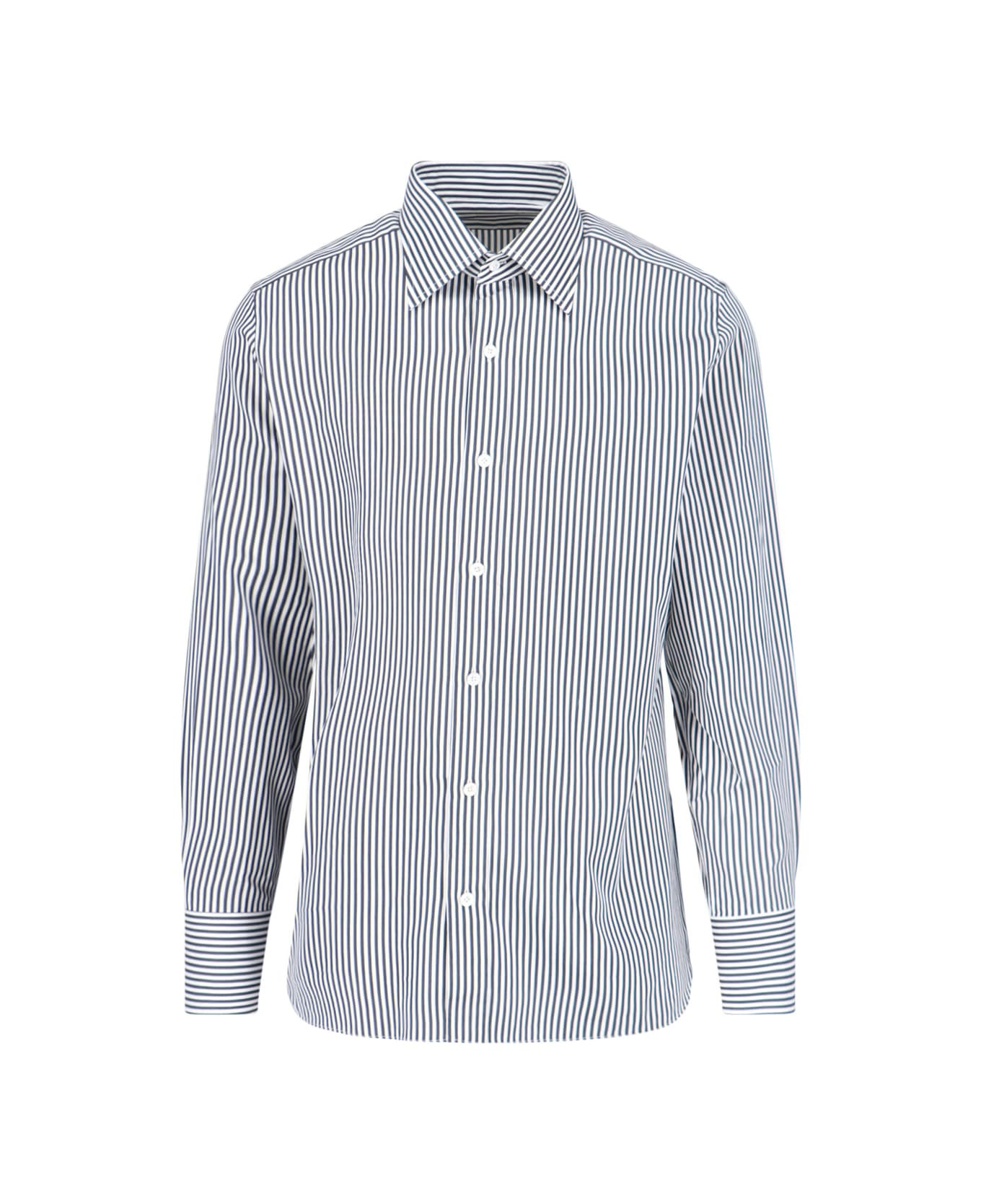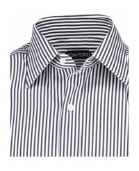 Tom Ford slim striped shirt in white cotton with blue striped pattern, classic collar, button closure, button cuffs, straight hem. Composition: 81% Cotton, 19% Silk Made in: Italy Color: White Size and fit: - vestibilita slim Model number: HSBC01CSP16WNA