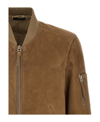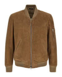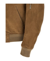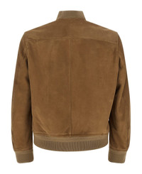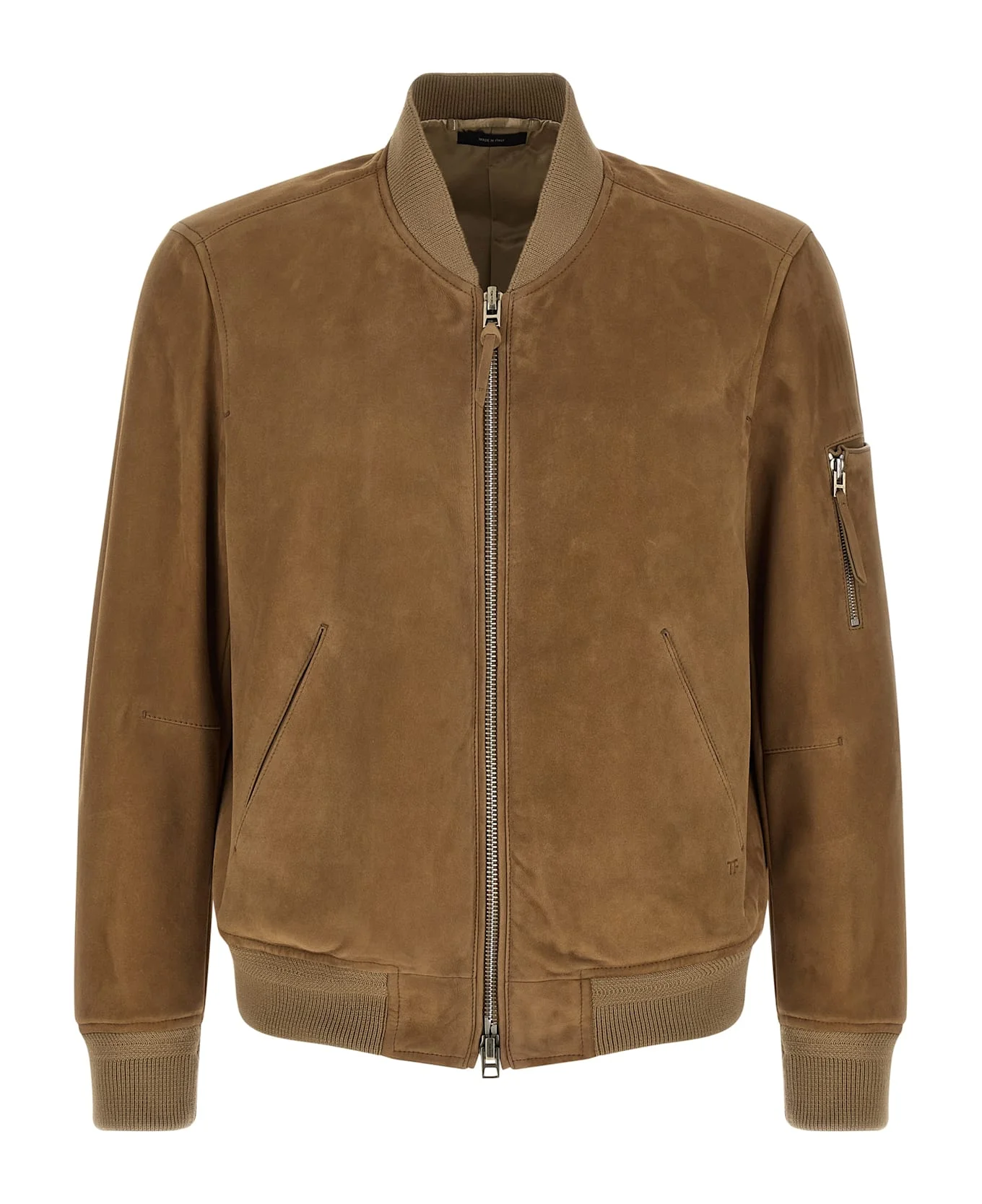 Suede bomber jacket with tone-on-tone ribbed knit details, high neck, embossed logo and front zip closure, pockets, long cuffed sleeves, headband, lining. Composition: 100% lamb leather (Ovis aries) Made in: Italy Color: Beige Size and fit: - true to size fit Model number: LBS087LMS027JBV